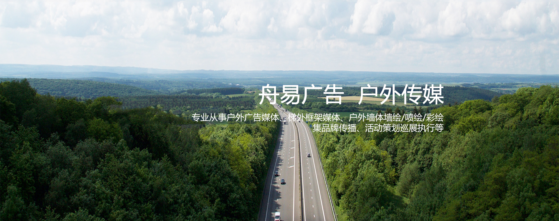 寧波舟易廣告傳媒有限公司創建于2010年,公司專業從事戶外廣告媒體、梯外框架媒體、戶外墻體墻繪/噴繪/彩繪,集品牌傳播、活動策劃巡展執行、物料制作(噴繪、寫真、圍檔、異形廣告牌、標識標牌等)燈箱制作等,發布于一體的綜合性廣告公司,同時我們匯集了一批優秀的策劃、執行、施工團隊、管理等方面的人才,形成一個充滿活力、勇于創新的團隊,秉承雕琢自身、開拓進取的理念,并以政府資源優勢以全方位為客戶的服務。
